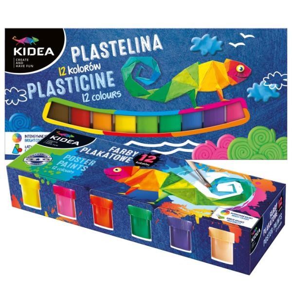 Zestaw farby 12 kolorów + plastelina 12 kolorów KIDEA.
