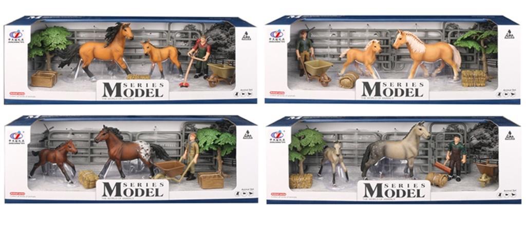 4 WZORY, W ZESTAWIE: 2 KONIE, FIGURKA ROLNIKA, AKCESORIA, WYM. OPK: 43 X 14 X 10 CM., 3+