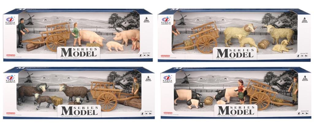 4 WZORY, W ZESTAWIE: 4 ZWIERZĄTKA, FIGURKA ROLNIKA, AKCESORIA, WYM. OPK: 30 X 14 X 10 CM., 3+