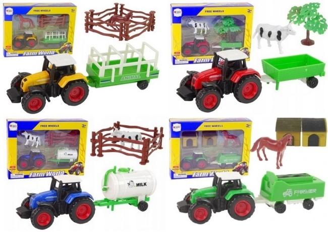Wspaniały zestaw Farm World Traktor z Maszynami Rolniczymi zapewni godziny kreatywnej zabawy każdemu dziecku. Dostępne są cztery różnorodne warianty, każdy z innym kolorem traktora i unikalnym kompletem akcesoriów. Możesz wybrać traktor z przyczepą do transportu zwierząt, traktor z przyczepą do transportu plonów, traktor z cysterną na mleko lub traktor z przyczepą do prac polowych. W zależności od zestawu, dołączone są elementy takie jak krowa, koń, zagroda, drzewo czy miniaturowy budynek gospodarczy. Wszystkie maszyny posiadają funkcję wolnych kół, co pozwala na dynamiczną zabawę. Zestawy są wykonane z dbałością o detale, odwzorowując prawdziwe maszyny rolnicze. Idealne do kolekcjonowania i odgrywania scenek z farmy. Każdy zestaw sprzedawany jest osobno. Cena za jeden zestaw.
