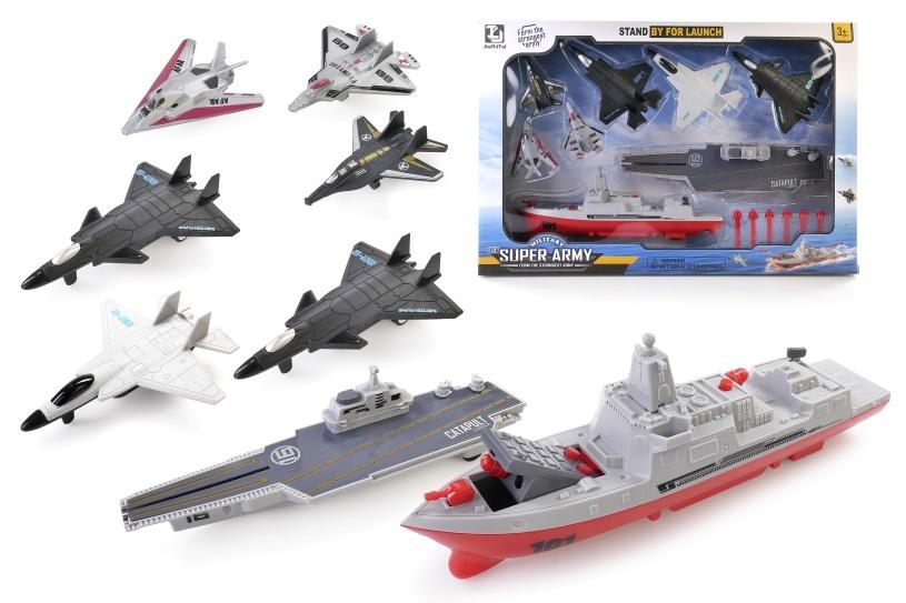 W zestawie: 2 statki, 3 samoloty, 3 drony, 6 pocisków, funkcje: statek wystrzeliwuje pociski, wym. Opak. 41,5 x 27,5 x 7 cm, 3+