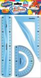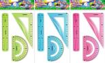 Zestaw przydatny w szkole, w szczególności na zajęciach matematycznych. W skład zestawu wchodzą: linijka, ekierka, kątomierz. Produkty zostały wykonane ze specjalnego materiału odpornego na złamanie. Linijka 20 cm Ekierka 14 cm Kątomierz