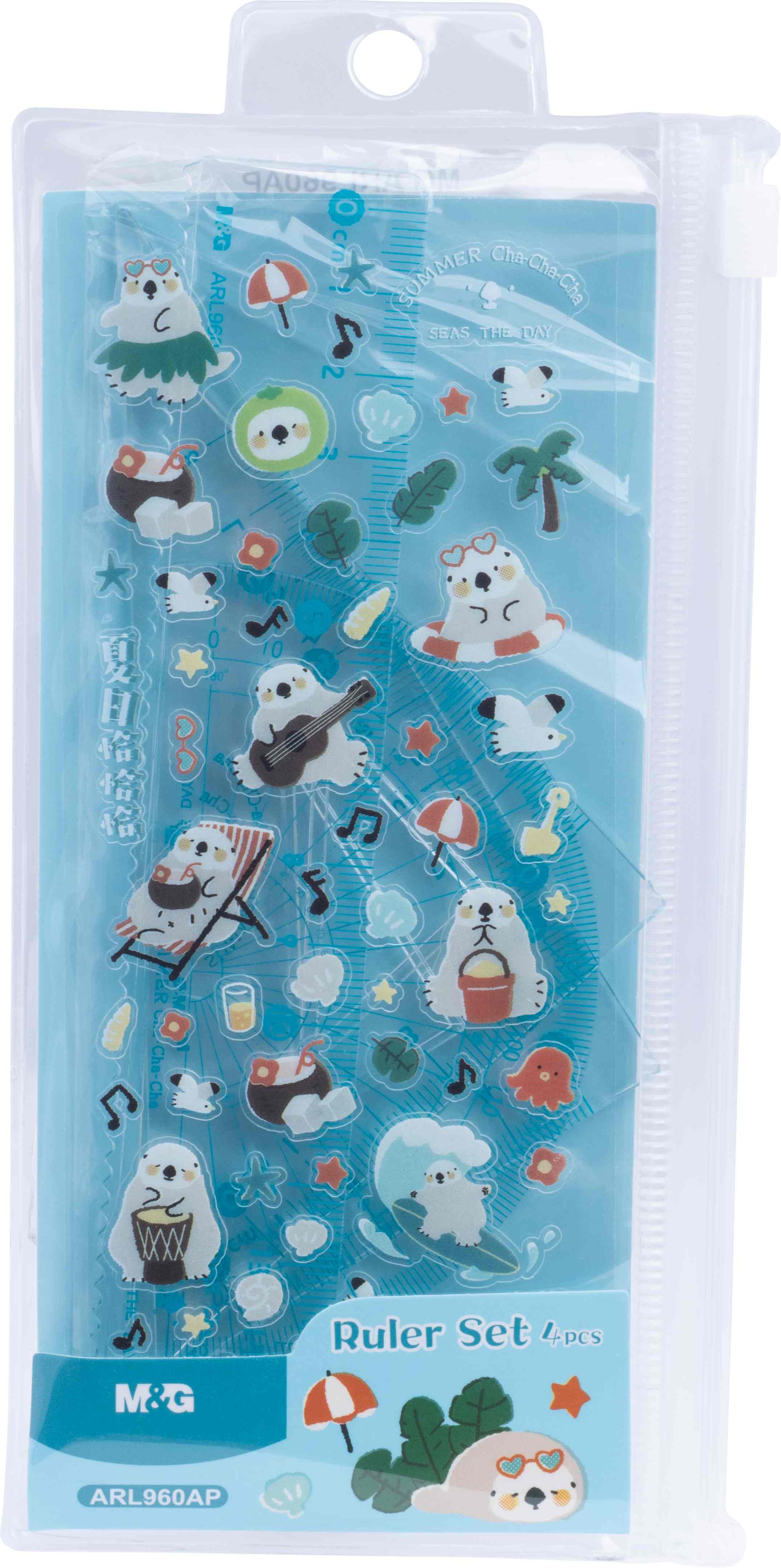 4 elementy: linijka 15 cm, 2 ekierki, kątomierz