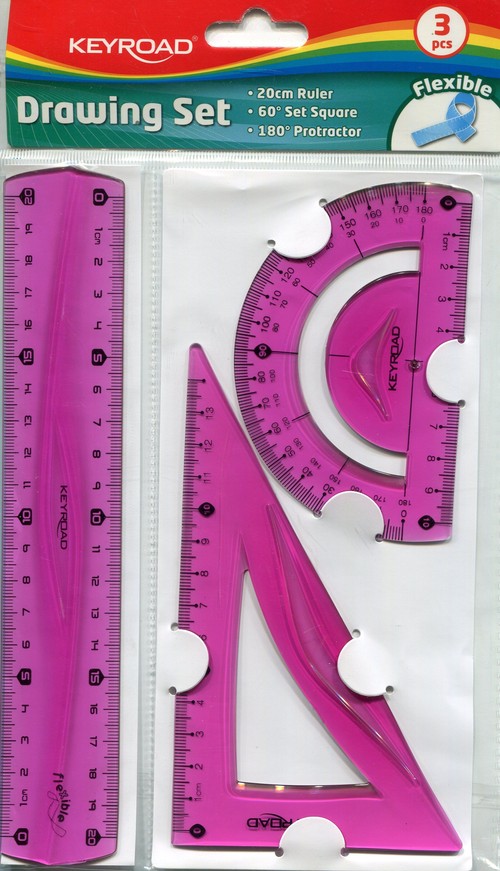 zestaw średni: linijka 20cm, kątomierz 10cm, ekierka 18cm