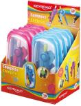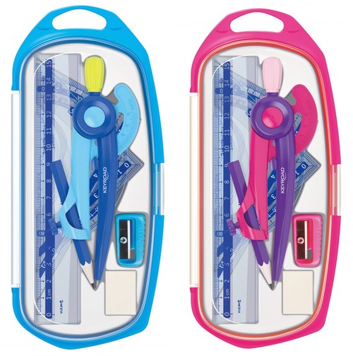 zestaw duży: cyrkiel, linijka, kątomierz, ekierka, temperówka, gumka
