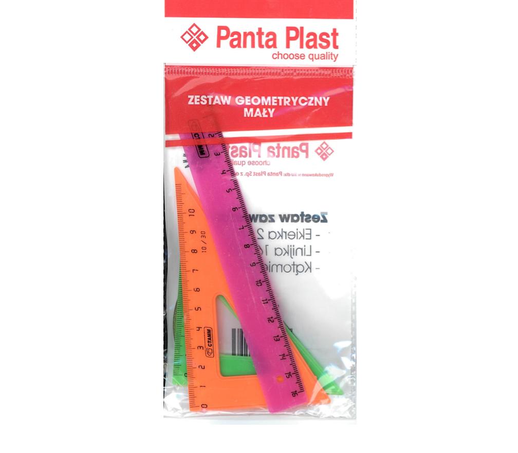 Zestaw geometyczny mały w zestawie ekierka, 2 sztuki linijek po 16cm, kątomierz.