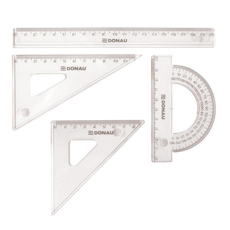 • zestaw mały: linijka 20cm, kątomierz, ekierka 9cm i ekierka 13,5cm