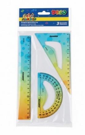 zawiera: linijkę 20cm, ekierkę 14cm, kątomierz