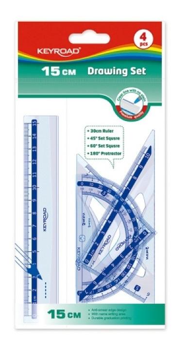 zestaw: linijka 15cm, kątomierz 10cm, dwie ekierki 18cm