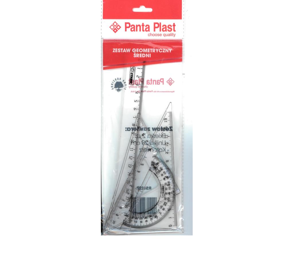 Zestaw geometyczny średni w zestawie ekierka, 2 sztuki linijek po 20cm, kątomierz.