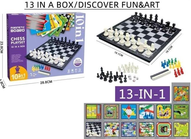 Zapewnij swoim bliskim godziny niezapomnianej rozrywki dzięki temu wyjątkowemu zestawowi gier 13 w 1. To kompletne centrum zabaw, które łączy tradycję z nowoczesnością, oferując bogaty wybór gier planszowych dostosowanych do graczy w każdym wieku. Sercem zestawu jest solidna, magnetyczna podstawa, która służy jako szachownica oraz baza dla pozostałych gier. Magnesy skutecznie zapobiegają przewracaniu i gubieniu się pionków, co sprawia, że zestaw jest idealnym wyborem nie tylko do domu, ale również na wakacyjne wyjazdy i podróże. Wewnątrz opakowania znajdują się kolorowe, wymienne plansze umożliwiające grę w takie tytuły jak ludo, gęś, wyścigi samochodowe, kosmiczne przygody, baseball, piłka nożna oraz oczywiście klasyczne szachy i warcaby. Każda gra to nowe wyzwanie, które pomaga dzieciom rozwijać umiejętności strategicznego myślenia, koncentracji oraz zasad zdrowej rywalizacji.