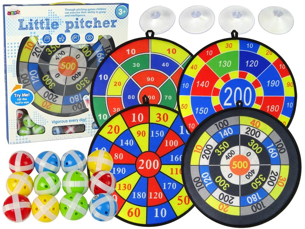 Dzięki zastosowaniu mocnych rzepów piłeczki bez problemu przyklejają się do tarczy. Duży rozmiar tarcz ułatwi zabawę najmłodszym, dając szansę na celny rzut. Można powiesić tarczę na ścianie bądź drzewie, by dziecko mogło celować z większej odległości. Cztery tarcze w zestawie umożliwiają urozmaicenie zabawy.