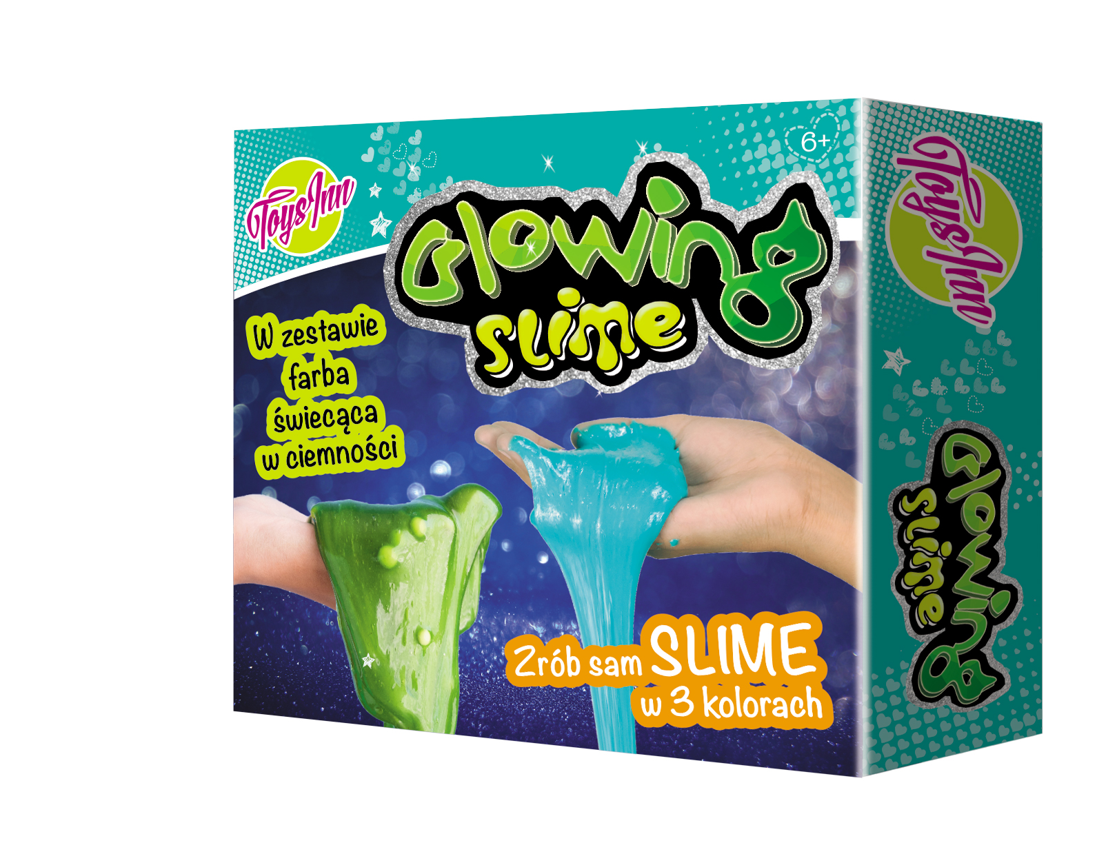 W zestawie: proszek Slime w 3 kolorach 3 kubeczki farba świecąca w ciemności brokat piankowe kuleczki miarka łyżeczka. Wiek 6+