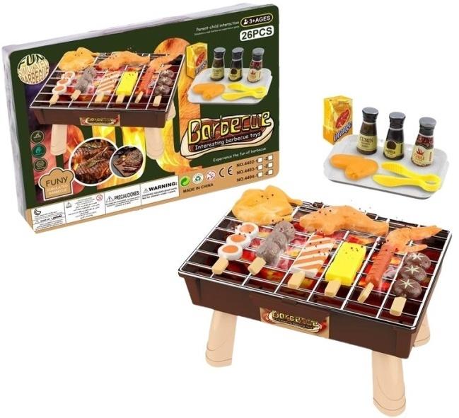 Czy Twoje dziecko uwielbia pomagać Ci podczas letnich grillowań? Teraz może mieć swój własny, bezpieczny i pełen zabawy zestaw do grillowania! Ten kolorowy zestaw zawiera aż 26 realistycznie wyglądających elementów, które przeniosą zabawę na zupełnie nowy poziom. W skład zestawu wchodzi miniaturowy grill z rusztem, na którym mali kucharze mogą układać pyszne atrapy jedzenia. Znajdą tu między innymi soczyste kiełbaski, smakowite ryby, kolorowe warzywa, a nawet apetyczne szaszłyki. Dodatkowo, zestaw zawiera urocze buteleczki imitujące przyprawy, takie jak ketchup, musztarda i sos sojowy, oraz niezbędne akcesoria do grillowania, takie jak szczypce i łopatka. Zabawa w grillowanie nie tylko dostarcza mnóstwo radości, ale również rozwija wyobraźnię, kreatywność i umiejętności społeczne dziecka podczas zabawy z innymi. Elementy są bezpieczne i dostosowane do małych rączek. Podaruj swojemu dziecku ten fantastyczny zestaw, aby mogło bezpiecznie i kreatywnie spędzać czas, wcielając się w rolę mistrza grillowania! Idealny prezent dla dzieci od 3 roku życia.