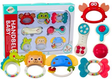 Zestaw Zabawek Grzechotek Gryzaków Zwierzątka 8 Sztuk Zestaw grzechotek dla malucha to niezwykła kolekcja zabawek, która nie tylko bawi, ale i wspiera rozwój najmłodszych dzieci na wielu poziomach. Każda z grzechotek jest starannie zaprojektowana w kształcie uroczych zwierzątek, co nie tylko przyciąga wzrok malucha, ale też pobudza jego ciekawość i eksploracyjne dążenia. Każda z grzechotek posiada różnorodne sensoryczne elementy. Grzechoczące części angażują słuch dziecka, zapewniając przyjemne dźwięki podczas potrząsania zabawką. Dodatkowo, koraliki do przesuwania na grzechotkach rozwijają zdolności manualne i koordynację ruchową, zachęcając do eksperymentowania i poznawania różnych tekstur. Wykonane z gumowych elementów zakończenia grzechotek nie tylko zwiększają bezpieczeństwo, ale także pełnią funkcję gryzaków, co jest szczególnie istotne podczas etapu ząbkowania dziecka. Dzięki nim maluch może bezpiecznie i komfortowo eksplorować świat wokół siebie, mając jednocześnie niezbędne wsparcie w łagodzeniu objawów związanych z ząbkowaniem. Zestaw grzechotek nie tylko stymuluje rozwój fizyczny i sensoryczny dziecka, ale również wspiera jego rozwój emocjonalny poprzez dostarczanie satysfakcjonujących doznań związanych z manipulowaniem zabawkami. To również doskonały sposób na budowanie więzi pomiędzy rodzicem a dzieckiem podczas wspólnej zabawy. Każda grzechotka jest starannie wykonana z myślą o bezpieczeństwie i komforcie dziecka, zapewniając nie tylko rozrywkę, ale i wsparcie w zdrowym rozwoju malucha. To idealny wybór dla rodziców poszukujących zabawek, które nie tylko bawią, ale i uczą, wspierając rozwój małych odkrywców. Wymiary opakowania: 45cm x 33cm x 7cm Posiada certyfikat CE, ponadto jest zgodny z normą EN71. Przeznaczony dla dzieci od pierwszych miesięcy.