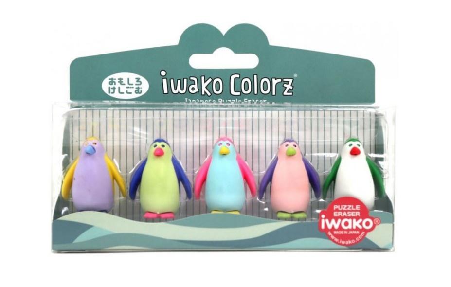 Gumki do mazania w kształcie pingwinów, różne kolory. 5szt w zestawie.Wyjątkowy zestaw 5 kolorowych pingwinków w eleganckim opakowaniu. Pozamieniaj części figurek i stwórz własne, niepowtarzalne i stylowe pingwinki! Idealne dla miłośników eksperymentowania i odkrywania nowych kombinacji kolorów. Gumka wykonana jest z miękkiej gumy wysokiej jakości; jest śliczna i funkcjonalna. Wiek: 5+ MADE IN JAPAN