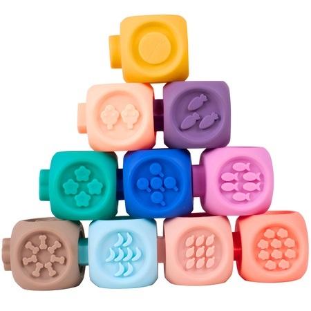 Różnorodność kolorów i tekstur: Dzieci warto poznawać z otaczającym światem już od początków życia. Dzięki wielobarwności, zabawki są wyjątkowo interesujące i przyciągają wzrok. Figurki są miękkie, a dzięki nietoksycznym materiałom mogą służyć jako gryzaki lub zabawki, które można ściskać, rzucać i bawić się dowoli. Nadają się również idealnie do zabawy podczas kąpieli.