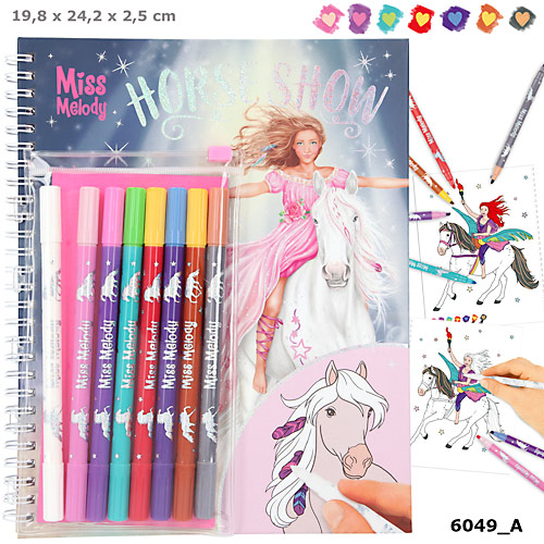Zestaw Horse Show z flamastrami Miss Melody, ok.60 stron do kolorowania i 8 magicznych flamastrów.