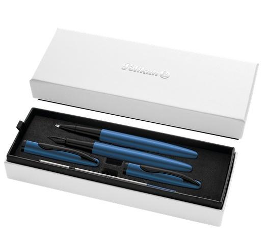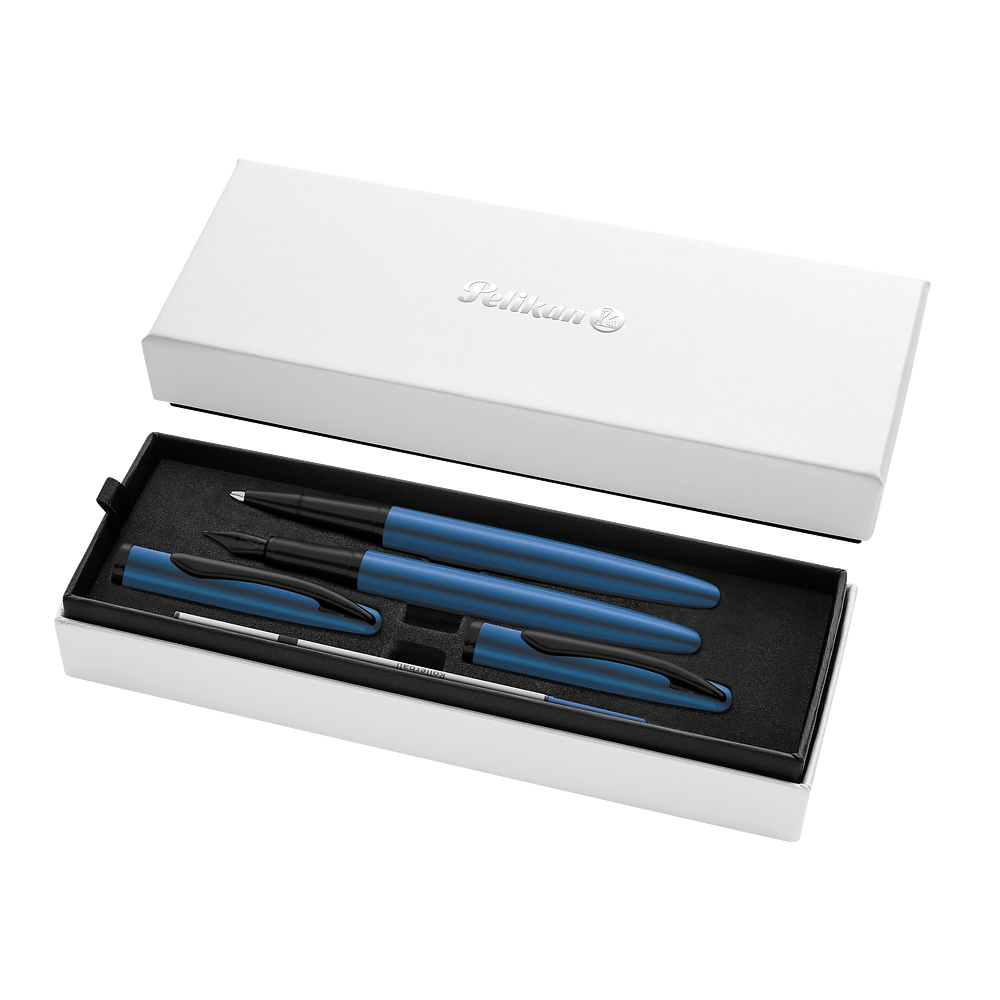 Spójny design i eleganckie wykończenie dla miłośników harmonii i stylu Pióro wieczne ze stalówką M zapewnia płynne i precyzyjne pisanie Pióro kulkowe na naboje atramentowe czyste i wygodne w obsłudze Oba przybory wyposażone w sprężynowy klips w kształcie dziobu pelikana Znakomite wyważenie zwiększa komfort użytkowania Metalowe elementy w 100% nadające się do recyklingu ekologiczny wybór
