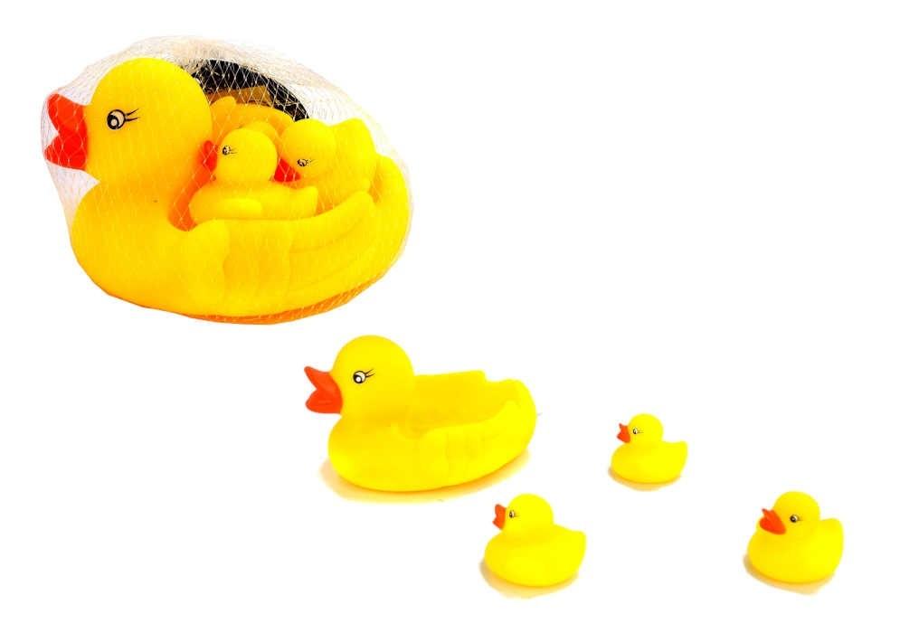 Kaczka z małymi kaczuszkami to gumowe zabawki do kąpieli w wannie, czy basenie. Gumowe zabawki zachęcą dziecko do codziennych kąpieli. Małe kaczuszki po ściśnięciu piszczą. Każda kaczka ma otwór, z którego tryska woda.