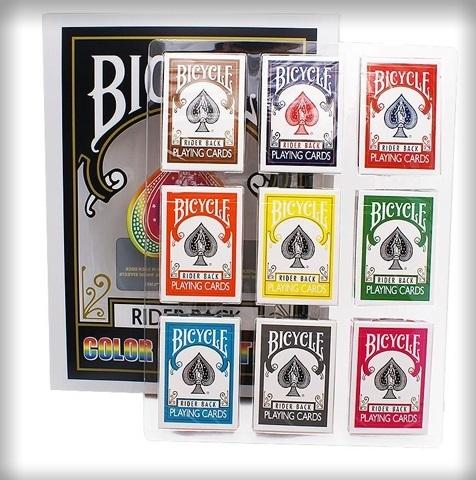 Niesamowity zestaw ""Bicycle - Kolory"". Eleganckie, przezroczyste opakowanie z 9 taliami Bicycle w 9 różnych kolorach.