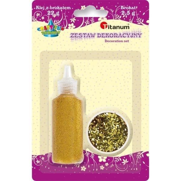 Zestaw klej z brokatem 22g + brokat 1mm 2,5g w słoiczku złoty