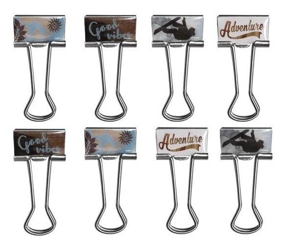 Zestaw 8 sztuk klipsów Snowboard. Sprawią, że praca stanie się przyjemnością. Stylowy i oryginalny element wyposażenia biura.