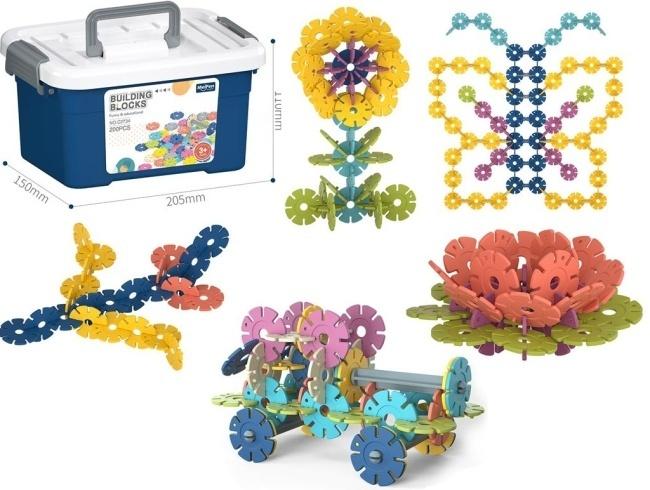 Odkryj nieograniczone możliwości zabawy z zestawem 200 klocków konstrukcyjnych w żywych kolorach, które wyglądem przypominają płatki śniegu lub koła zębate. Ten edukacyjny zestaw został zaprojektowany, aby stymulować wyobraźnię przestrzenną, kreatywność oraz koordynację wzrokowo-ruchową u najmłodszych. Łatwe do łączenia elementy pozwalają na tworzenie dwu- i trójwymiarowych modeli. Dzieci mogą z nich budować skomplikowane wzory, zwierzęta, pojazdy, rośliny, a także abstrakcyjne formy, co sprzyja rozwojowi zdolności inżynierskich i logicznego myślenia. Wszystkie klocki są bezpiecznie przechowywane w solidnym, niebieskim pudełku z wygodnym uchwytem, co ułatwia utrzymanie porządku po skończonej zabawie oraz transport zestawu. Pudełko ma wymiary około 205 mm długości, 150 mm szerokości i 110 mm wysokości. Jest to doskonały prezent, który łączy naukę z przyjemnością.
