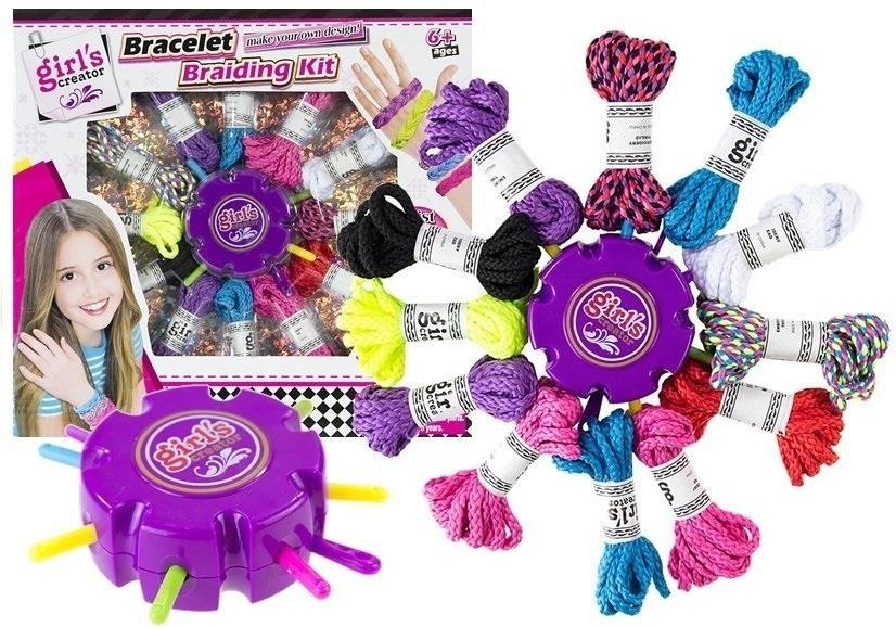 Zestaw Zawiera 1 2 kolorowych sznurków. Z każdego z nich możesz zrobić bransoletkę, warkocza. Średnica sznureczka to ok 0,5cm Zestaw zawiera urządzenie ułatwiające zaplatanie.