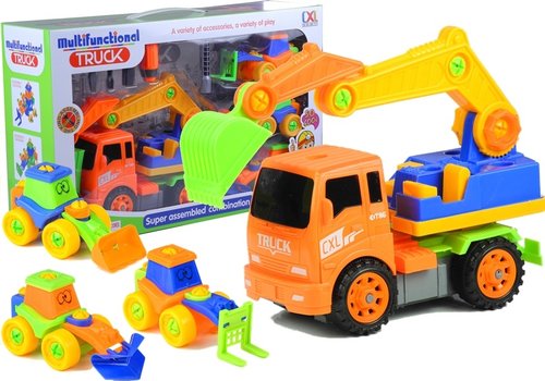 Zestaw koparek z narzędziami Przedstawiony zestaw składający się z dużej koparki i trzech mniejszych będzie rajem dla małego majsterkowicza, który pasjonuje się pojazdami. Wobec tej wielokolorowej kolekcji żaden maluch nie przejdzie obojętnie. Połączenie zabawy z możliwością własnoręcznego skręcania i rozkręcania poszczególnych elementów czyni zabawkę doskonałą frajdą na długie godziny. Produkt ten będzie trafionym prezentem dla samodzielnego chłopca, który lubi prace ręczne, ale także i dla dzieciaków, wybierających wspólną zabawę z rodzicami lub rodzeństwem. Duża koparka ozdobiona napisami na kabinie kierowcy odznacza się bardzo realistycznym wzornictwem. Pulpit znajdujący się w tylnej części pojazdu obraca się o 360°, dzięki czemu dziecko może używać swej wyobraźni, kopiąc z każdej strony. Niebieski pulpit wyposażony jest w fotel kierowcy i schody, dzięki czemu młody kierowca śmiało może połączyć ten zestaw z innymi zabawkami. Za pomocą dołączonych do zestawu plastikowych śrubokrętów z wymiennymi końcówkami, dziecko może odkręcić łopatę, wysięgnik, a nawet pulpit, dowolnie modyfikując swój pojazd. Mniejsze koparki spełniają różne, odmienne funkcje. Ułatwiają podnoszenie elementów, kopanie i spychanie piachu. Ozdobione są dużymi, zdziwionymi oczkami, co nadaje im przyjemnego i zabawnego charakteru. Również i w przypadku mniejszych autek dziecko może użyć swej wyobraźni, odkręcając koła lub przednie elementy. Zestaw dla sympatyka pojazdów budowlanych sprawdzi się w różnych warunkach. Wykonanie go z wysokogatunkowego plastiku pozwala na zabawę zarówno w domowym zaciszu, jak i w ogródku, na placu zabaw czy piaskownicy. Zaletą tego zestawu jest mnogość elementów, umożliwiająca podarowanie go rodzeństwu. Komplet składający się z pojazdów i narzędzi przeznaczony jest dla dzieci powyżej 3. roku życia. Zestaw dla małego fana koparek składa się z: - dużej koparki z ruchomym wysięgnikiem i łyżką, - trzech małych koparek - każda pełni inną funkcję, - śrubokrętów z różnymi końcówkami - do samodzielnego skręcenia według danej potrzeby. Wymiary poszczególnych elementów wchodzących w skład zestawu: - duża koparka: 27 cm x 10,5 cm x 14 cm, - małe koparki: około 15 cm x 7,5 cm x 8 cm, - narzędzia małe: 5,5 cm, - narzędzie duże: 15,5 cm x 10 cm. Wymiary opakowania: - 49,5 cm x 30 cm x 14 cm.