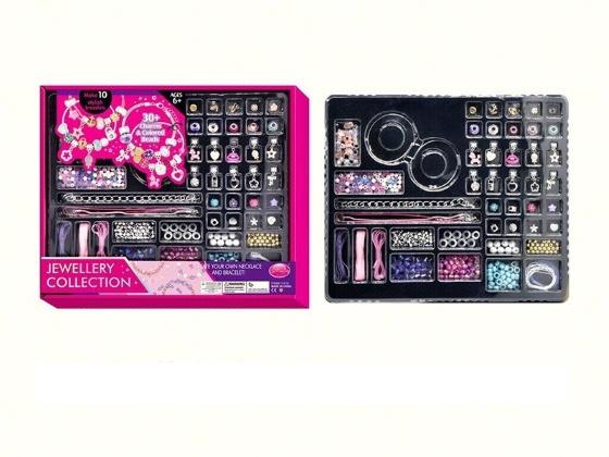 W zestawie: 9 rodzajów koralików, 5 bransoletek, 2 rzemyki, tasiemka, 2 żyłki, 18 ozdobnych koralików, 10 zawieszek, wym. opak. 33,6 x 28,5 x 4,5 cm, 6+