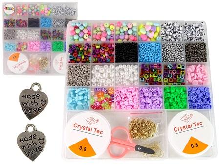 Zestaw Koralików Do Robienia Biżuterii Literki Samodzielne tworzenie biżuterii to ciekawy pomysł na spędzanie wolnego czasu, a przede wszystkim idealna rzecz wspomagająca rozwój Twojego dziecka. Razem z koleżankami mogą spędzić wspólne popołudnie na super zabawie. Nieograniczona możliwość projektowania własnych wzorów, różne kolory pobudzą ich kreatywność i wyobraźnie. Sam proces twórczy rozwinie motorykę, pozwoli się skupić, a przede wszystkich Twoje dziecko ćwiczy cierpliwość i wytrwałość. Jest to zajęcie czasochłonne, ale satysfakcja ze zrobionej własnoręcznej biżuterii jest nieoceniona. Zestaw zawiera wszystko co potrzeba do stworzenia biżuterii. Duży organizer ma 25 rodzajów koralików w różnych odcieniach różu, znajdą się tak perełki, spinki i różnego rodzaju zawieszki. Każdy znajdzie swoje ulubione! Duża zaletą jest to, że każdy z koralików ma swoje miejsce. W trakcie zabawy można utrzymać porządek. Dodatkowe akcesoria w postaci nożyczek oraz szpuli z elastyczną gumką sprawia, że mamy wszystko, co potrzebne. Stwórz przepiękne naszyjniki, bransoletki czy pierścionki! Twórz własny styl! Elementy zestawu: - koraliki w różnych odcieniach - koraliki z literkami - zapięcia - szpula z gumką x2 - nożyczki Wymiary opakowania: 23 cm x 23 cm x 2 cm Zestaw zapakowany jest w duże, ozdobne pudełko, dzięki czemu nadaje się na prezent dla każdej artystki. Ze względu na mnogość małych elementów, zabawka przeznaczona jest dla wszystkich dziewczynek powyżej 3 roku życia. Zgodna z normą EN71 i certyfikatem CE.