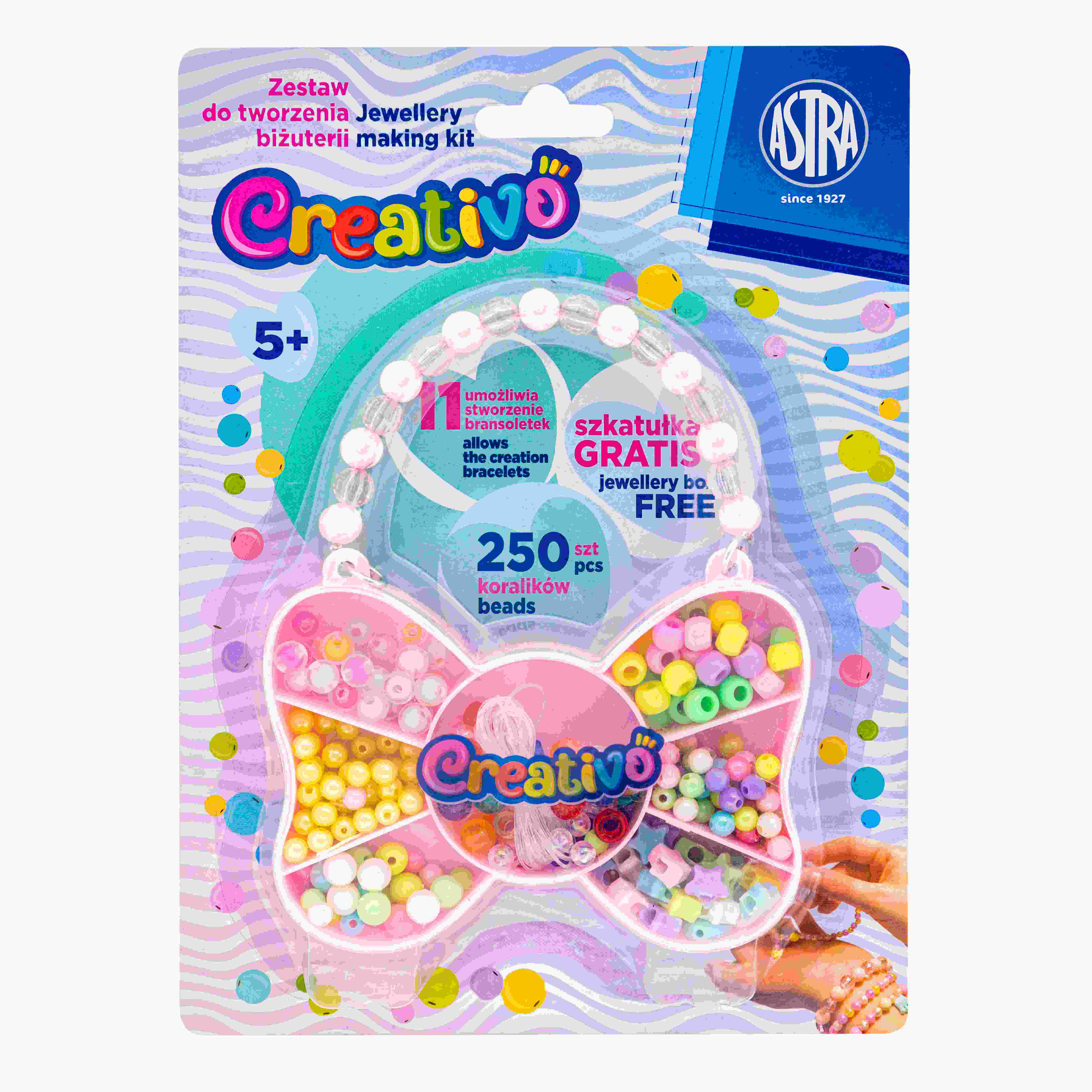 Opakowanie Zestaw koralików Motyl 250szt + 2m gumek ASTRA