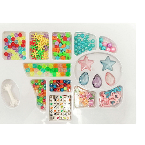Zestaw kolorowych koralików, dzięki któremu mała dziewczynka samodzielnie będzie mogła zaplanować, stworzyć i użytkować własną biżuterię.