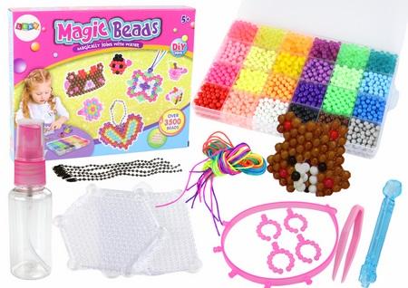 Zestaw Koralików Wodnych DIY Magiczne Koraliki 24 Kolory Biżuteria 3500El. Oferujemy fascynujący zestaw koralików DIY, idealny dla młodych artystów. W zestawie znajdziesz koraliki w 24 różnych kolorach. To świetny sposób na rozwijanie wyobraźni i zdolności manualnych. Dodatkowo zestaw zawiera dwie podstawki w kształcie kwadratu i sześciokąta, które umożliwiają tworzenie różnorodnych wzorów i kompozycji. Butelka na wodę pozwala na łatwe moczenie koralików, co umożliwia ich sklejanie. Dzieci mogą tworzyć zawieszki, biżuterię i wiele innych wyjątkowych ozdób. To także świetna okazja do rozwijania kreatywności i spędzania czasu twórczo. Zachęć swoje dziecko do eksperymentowania z różnymi kolorami i wzorami, dzięki czemu będzie mogło wyrazić swoją wyjątkową osobowość poprzez tworzenie własnych dzieł sztuki. Ten zestaw koralików DIY to świetny prezent dla małych artystów i twórczych dusz. Sposób używania: Ułóż koraliki na podstawie w wybrany przez siebie wzór, a gdy układ jest już gotowy - spryskaj go wodą z odległości ok. 10cm. Pamiętaj - bez odpowiedniej ilości wody - koraliki nie skleją się wystarczająco. Możesz przechylić podkładkę i w przypadku nadmiaru wody - wchłonąć ją np. ręcznikiem papierowym. Odczekaj aż koraliki połączą się w jedną całość - odstaw je na co najmniej godzinę, a dopóki koraliki całkowicie nie wyschną - staraj się ich nie dotykać. Następnie delikatnie wyjmij układankę z podstawki i gotowe ! Zawartość zestawu : - koraliki w 24 różnych kolorach - podkładka kwadratowa - podkładka sześciokątna - pęseta - aplikator - spryskiwacz - 4 zawieszki - 2 plastikowe, różowe bransoletki do ozdobienia - 5 plastikowych, różowych pierścionków do ozdobienia - książeczka z przykładowymi wzorami Wymiary opakowania : 30 cm x 24 cm x 5 cm Posiada certyfikat CE, ponadto jest zgodny z normą EN71. Zabawka przeznaczona jest dla dzieci powyżej 5 roku życia.