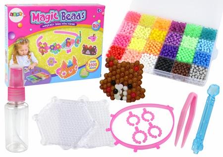 Koraliki Wodne Magiczny Zestaw Startowy Szablony 3500 EL Kolorowe koraliki wodne to świetny pomysł na twórczą zabawę - skutecznie zajmują na wiele długich godzin i wyzwalają absolutny wulkan kreatywnych pomysłów! Dzieci same tworzą coraz to nowe wzory, układy, dobierają kolory - możliwości tworzenia jest nieskończona ilość, gdy dzieci chwytają paluszkami lub pęsetką koralik i umieszczają go na podkładce, doskonalą sprawność dłoni a w dodatku powtarzają tę czynność mnóstwo razy. Zestaw wspiera koncentrację dzieci, a mianowicie, proces tworzenia wymaga skupienia uwagi, dzieci wyszukują odpowiednie, potrzebne do danego układu kolory. Współpraca z zestawem wzmacnia wytrwałość i cierpliwość dziecka- aby uzyskać efekt trzeba się napracować, czasami koralik ucieknie z paluszka, czasami się przewróci. Jest to zabawka do samodzielnego zaprojektowania i zbudowania. Zestaw składa się z wielu kolorowych, plastikowych koralików i pozwala na dowolne budowanie wszystkiego co wymyśli dziecko. Zabawka, która przemieni dziecko w małego architekta, pobudzi wyobraźnię i pomoże rozwinąć zdolności manualne. Super zestaw zapewni każdemu dziecku mnóstwo wesołej zabawy. Koraliki wodne to kolorowe kuleczki, które można ze sobą dowolnie łączyć, tworząc coraz to nowe kształty, postacie, figury czy przedmioty. Koraliki zwiększają swoją przyczepność za pomocą odrobiny wody. Gotowymi koralikami można udekorować pokój, zrobić sobie z nich breloczek do kluczy, zawieszkę a także tworzyć obrazy. Dołączona do zestawu mini instrukcja zawiera przykładowe, uniwersalne wzory do ułożenia. Opakowanie również może posłużyć za inspirację do kolejnych układanek. Jak używać ? Ułóż koraliki na podstawie w wybrany przez siebie wzór, Gdy układ jest już gotowy - spryskaj go wodą z odległości ok. 10cm, Pamiętaj - bez odpowiedniej ilości wody - koraliki nie skleją się wystarczająco, Możesz przechylić podkładkę i w przypadku nadmiaru wody - wchłonąć ją np. ręcznikiem papierowym, Odczekaj aż koraliki połączą się w jedną całość - odstaw je na co najmniej godzinę, Dopóki koraliki całkowicie nie wyschną - staraj się ich nie dotykać. Delikatnie wyjmij układankę z podstawki i gotowe. Do układanki możesz przełożyć zawieszkę i cieszyć się np. nowym brelokiem. Zawartość zestawu : - 2 podkładki do koralików ~ 9 cm x 10 cm - pensetka - podajnik koralików - box z koralikami -wzór do opaski -wzór do pierścionków -buteleczka na wodę -Oryginalne opakowanie Wymiary boxa : 19 cm x 13 cm x 2,5 cm Wymiary opakowania : 30 cm x 23,5 cm x 4,5 cm Posiada certyfikat CE, ponadto jest zgodny z normą EN71. Zabawka przeznaczona jest dla dzieci powyżej 5 roku życia.