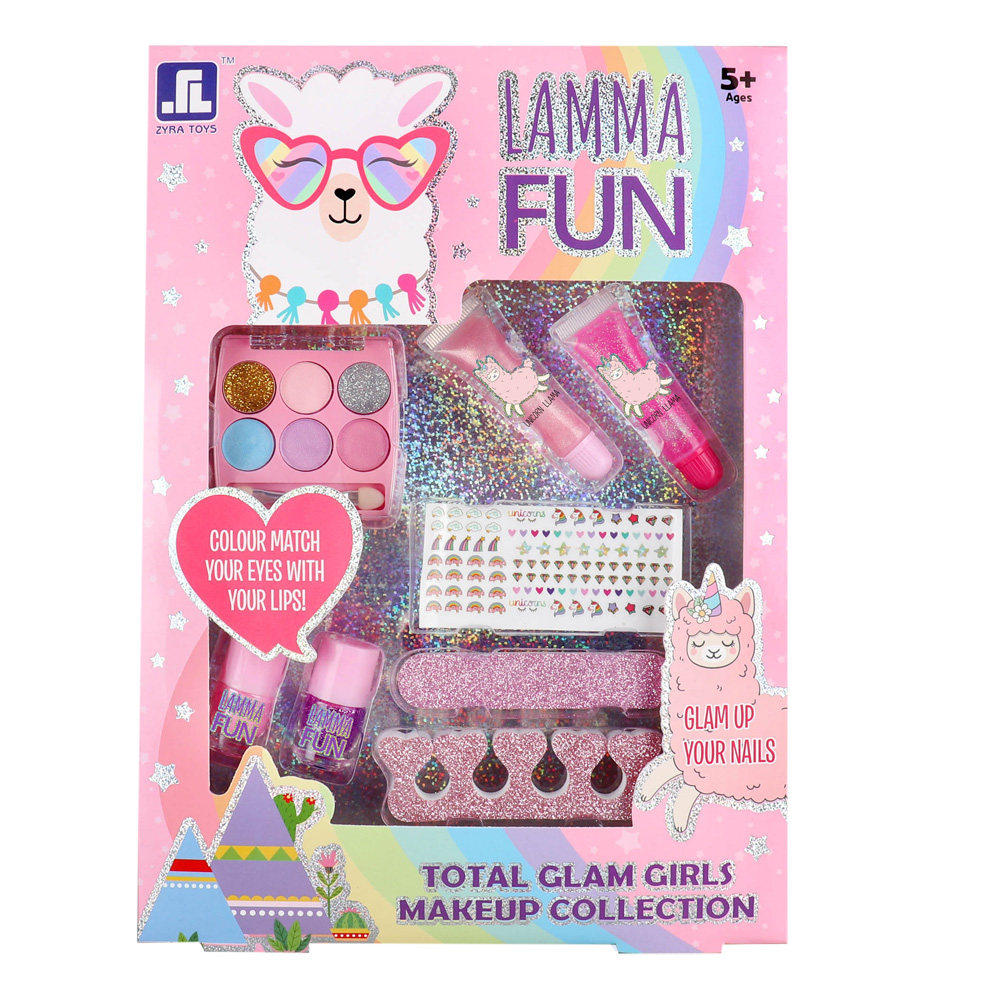 Zestaw składa się z dwóch mini lakierów do malowania paznokci, dwóch błyszczyków, cieni do powiek, separatora do malowania paznokci, pilniczka oraz naklejek. Wymiary opakowania: 33 x 4 x 23.5 cm