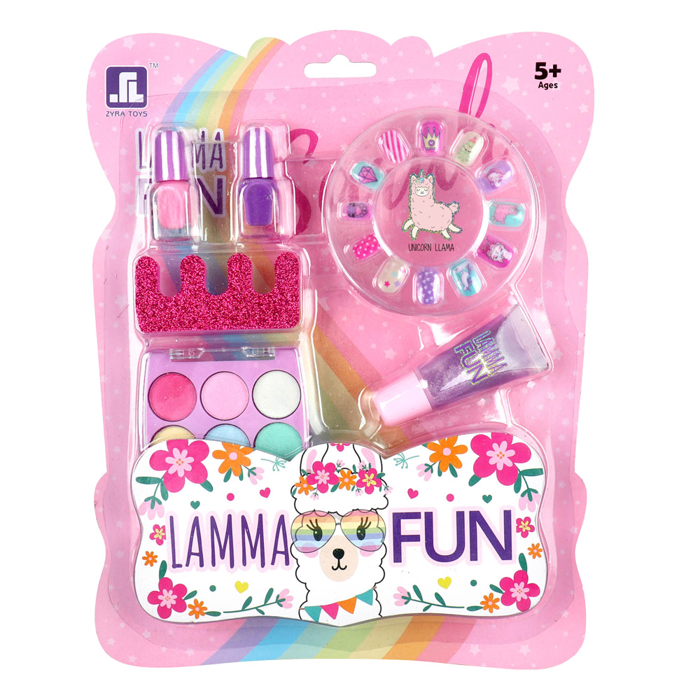Zestaw składa się z dwóch lakierów do paznokci, błyszczyka, cieni do powiek, separatora do palców oraz tipsów. Wymiary opakowania: 21.2 x 2.5 x 26.7 cm