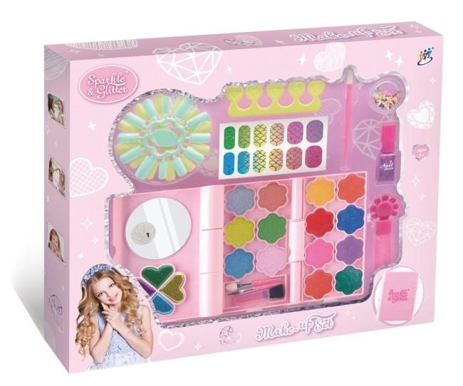 Podaruj swojej małej stylistce niezapomniane chwile kreatywnej zabawy z naszym zestawem do makijażu "Sparkle & Glitter"! Ten bogato wyposażony zestaw to prawdziwa skarbnica kosmetycznych niespodzianek, zaprojektowana specjalnie z myślą o dzieciach. Wewnątrz uroczego, różowego opakowania Twoja pociecha odkryje paletę tęczowych cieni do powiek, błyszczące błyszczyki, kolorowe lakiery do paznokci, zabawne naklejki na paznokcie, praktyczne aplikatory oraz wiele innych akcesoriów, które rozbudzą jej wyobraźnię. Ten fantastyczny zestaw nie tylko dostarczy mnóstwo radości, ale także pomoże rozwijać kreatywność, wyobraźnię i zdolności manualne. Idealny na prezent, urodziny czy inną specjalną okazję, zestaw do makijażu "Sparkle & Glitter" to gwarancja uśmiechu na twarzy każdej małej damy, która marzy o własnym kąciku piękności. Pozwól jej zabłysnąć i odkryć radość tworzenia własnych, niepowtarzalnych stylizacji!
