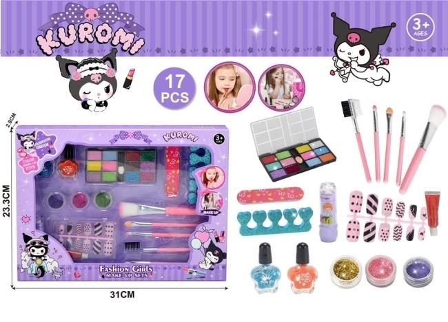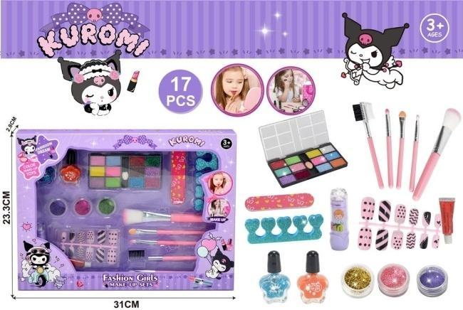Odkryj świat mody i kreatywności z uroczym zestawem do makijażu Kuromi, stworzonym specjalnie dla dziewczynek powyżej 3. roku życia. Ten bogaty, 17-częściowy komplet pozwoli każdej małej stylistce na bezpieczne eksperymentowanie z makijażem i stylizacją paznokci. W eleganckim, fioletowym opakowaniu z wizerunkiem Kuromi znajdziesz paletę cieni do powiek w żywych kolorach, błyszczyki, dwa lakiery do paznokci, a także brokaty do makijażu. Dołączone akcesoria, takie jak zestaw profesjonalnych pędzli, pilniczek, rozdzielacz do palców oraz urocze sztuczne paznokcie z motywami Kuromi, uzupełniają ten fantastyczny zestaw. Całość została zaprojektowana z myślą o małych rączkach i zapewnia godziny wspaniałej zabawy w odgrywanie ról i rozwijanie zdolności manualnych. Zestaw Kuromi to idealny prezent dla każdej dziewczynki, która marzy o swoim własnym kąciku piękności.
