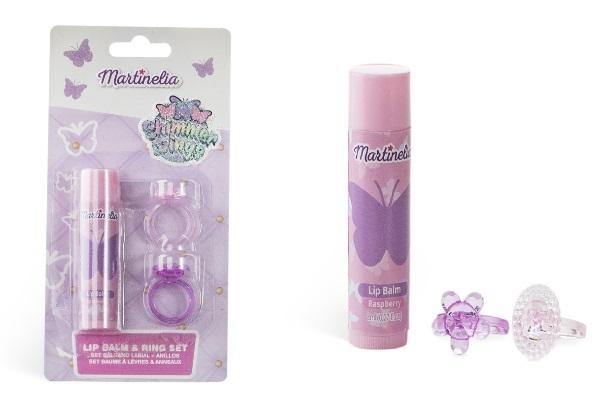 Zestaw kosmetyków zawiera 1 balsam do ust i 2 pierścionki.