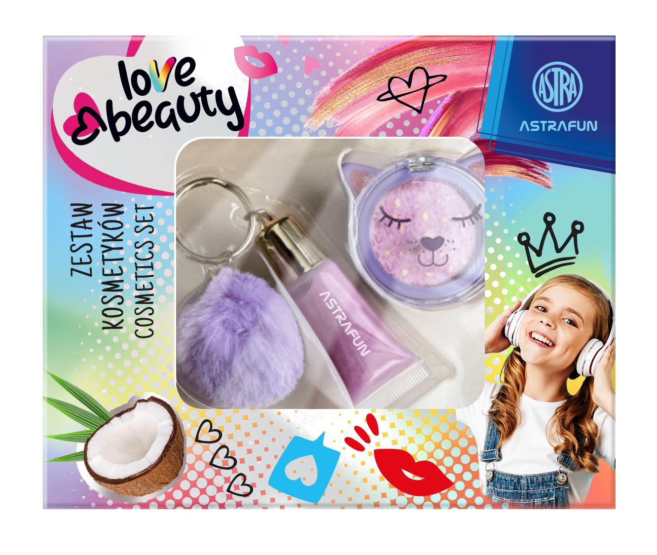 - Zestaw kosmetyków i gadżetów o zapachu kokosa ASTRAFUN  idealny prezent dla dzieci, które uwielbiają modę i pielęgnację.