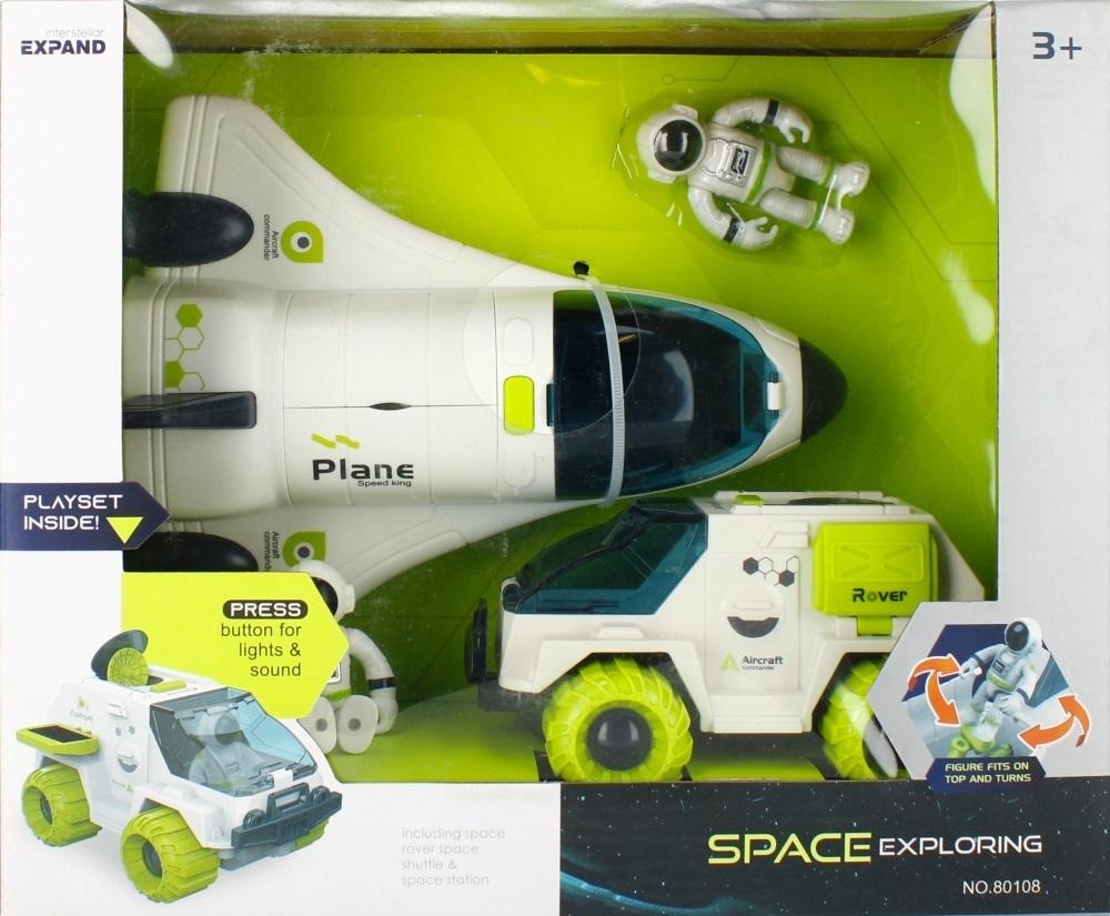Zalety produktu: Zestaw kosmiczny Rakieta to idealna zabawka dla fana kosmosu i astronomii, dzięki temu zestawowi pomożesz się mu przenieść w świat wyobraźni i kosmosu! Zestaw kosmiczny Rakieta MEGA CREATIVE pomoże pogłębić wiedzę o kosmosie, planetach czy kosmonautach, pokaże jak wygląda życie w kosmosie. Kreatywność, rozwój, nauka i zabawa! Czas wyruszyć w kosmos. Rakieta posiada efekty świetlne oraz dzwiękowe-odgłos startującej Rakiety, posiada ruchome elementy, otwierane drzwi. Zabawka wykonana z plastiku. Zawartość zestawu: Rakieta kosmiczna, 2x kosmonauta, 1x Łazik kosmiczny. Wymiary/waga/baterie: wymiary produktu (dł. x wys. x gł.)[cm]: -rakieta 20x25x10, -kosmonauta 5x8x2 -łazik 16x8x11, wymiar opakowania (dł. x wys. x gł.) [cm]: 32x27x13 , waga produktu bez opakowania [kg]: 0,58 kg, waga produktu w opakowaniu [kg]: 0,78 kg, wymaga zasilania bateriami 2x 1,5V AAALR3- załączono do zestawu . Zestaw przeznaczony dla dzieci w wieku: 3+. Pakowany w kartonik z okienkiem.
