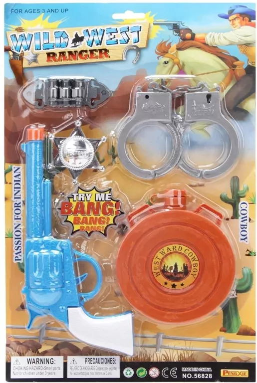 Zestaw Dzikiego Zachodu "Wild West Ranger" - Zostań Prawdziwym Szeryfem! Wyrusz w podróż do epoki Dzikiego Zachodu z naszym fantastycznym zestawem "Wild West Ranger"! Ten komplet akcesoriów pozwoli każdemu małemu miłośnikowi przygód wcielić się w rolę nieustraszonego szeryfa, stróża prawa lub odważnego kowboja. To idealna propozycja do kreatywnej zabawy w odgrywanie ról i wymyślanie własnych historii. Cechy produktu: Kompletny zestaw dla stróża prawa: W zestawie znajdziesz wszystko, co potrzebne prawdziwemu bohaterowi Dzikiego Zachodu: o Pistolet: Realistycznie wyglądający rewolwer w kolorze niebiesko-pomarańczowym, który z pewnością doda autentyczności każdej zabawie. (Uwaga: zabawka, nie strzela pociskami). o Gwiazda Szeryfa: Metalowa (plastikowa z efektem metalu) odznaka, która świadczy o statusie stróża prawa. o Kabura: Do zawieszenia pistoletu. o Kajdanki: Dla ujęcia złoczyńców i zaprowadzenia porządku. o Tarcza do strzelania: Okrągła tarcza z motywem "WESTWARD COWBOY", idealna do ćwiczenia celności (może być elementem do odgrywania ról, nie jest to tarcza do prawdziwego strzelania). Wesołe efekty dźwiękowe: Pistolet posiada funkcję "TRY ME! BANG! BANG! BANG!", co oznacza, że może wydawać dźwięki strzału, dodając realizmu i zabawy. Rozwój przez zabawę: Zestaw stymuluje wyobraźnię, kreatywność i umiejętności społeczne poprzez odgrywanie ról. Dziecko może tworzyć własne scenariusze, rozwijać zdolności narracyjne i uczyć się wartości, takich jak sprawiedliwość i odwaga. Bezpieczne materiały: Całość wykonana jest z lekkiego i bezpiecznego plastiku, odpowiedniego dla dzieci. Wiek: Produkt przeznaczony dla dzieci w wieku 3 lat i starszych. Idealny na prezent: To fantastyczny pomysł na prezent na każdą okazję - urodziny, święta, karnawał czy po prostu jako zachęta do aktywnej i kreatywnej zabawy. Wielkość opakowania: 38x24x3 cm Zostań legendą Dzikiego Zachodu i zaprowadź porządek w swoim własnym miasteczku z zestawem "Wild West Ranger"! Przygoda czeka!