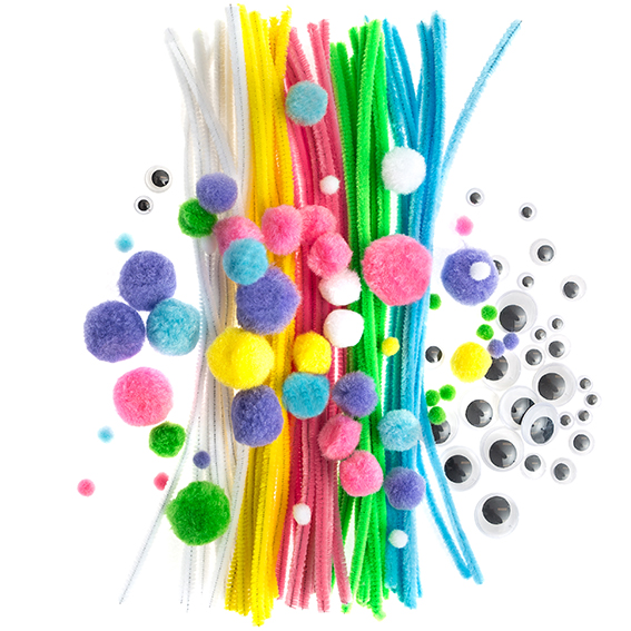 • pompony w 3 różnych rozmiarach i 6 kolorach, razem 50 sztuk
