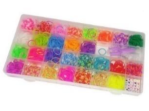Zestaw kreatywny gumki ok. 1800 szt + przyrząd do robienia bransoletek, plastic box 26x13x2cm