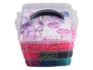 Zestaw kreatywny 3500 el., kuferek "Kwadrat" 3 poziomy, gumki + przyrząd do robienia bransoletek, 15x15x13 cm