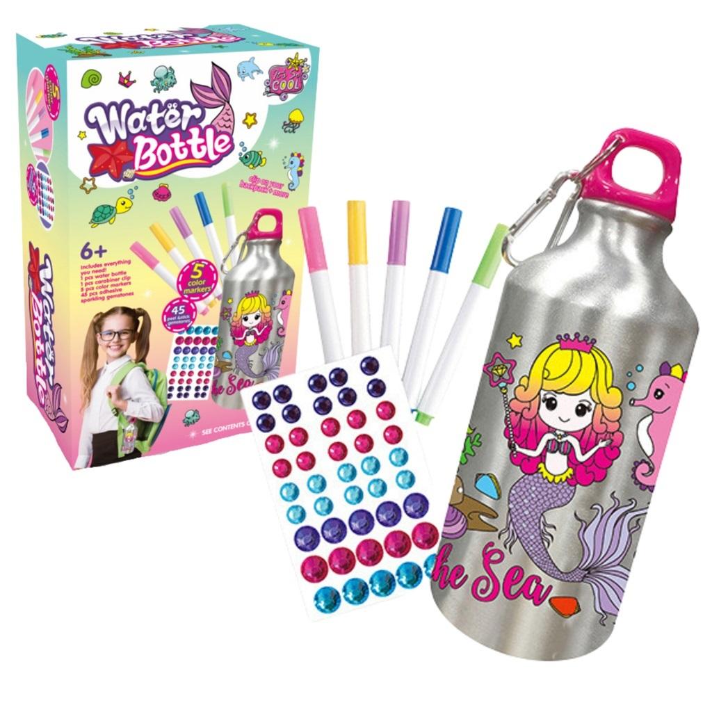 akcesoria do ozdabiania: Zestaw zawiera akcesoria, takie jak kolorowe pisaki i naklejki z diamentami, niezbędne do tworzenia indywidualnych wzorów na bidonie. Dzięki nim, dzieci mogą wyrazić swoją kreatywność i stworzyć unikalną butelkę, którą z dumą będą nosić.