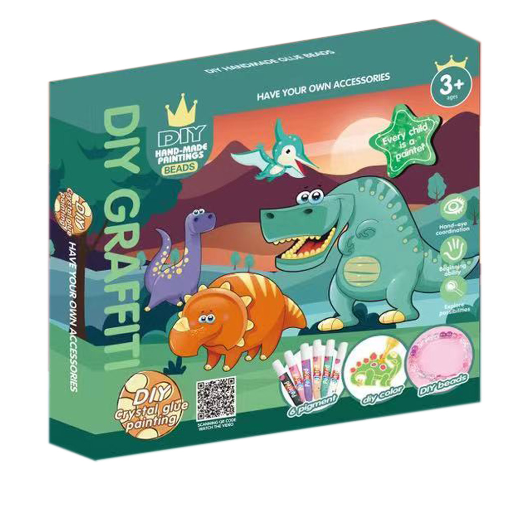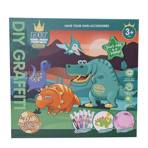 Super zestaw dla małego artysty. Dziecko może stworzyć ozdobę plecaka, piórnika czy kurtki. Nie lada gratka dla miłośników dinozaurów. Może także stworzyć bransoletkę czy piękny naszyjnik dla swojej mamy. W zestawie 6 elementów tematycznych do dekoracji, 6 farbek, zestaw kolorowych dżetów, łańcuszki, koraliki, żyłka, pęseta. Wymiary opakowania: 24.5 x 3.5 x 23 cm Wiek 3+