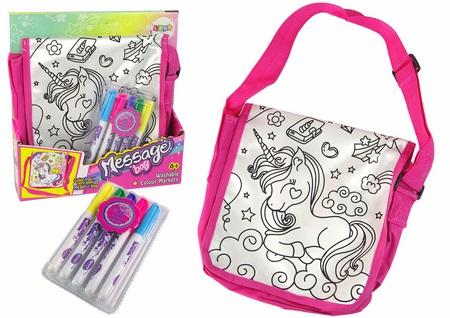Zestaw Kreatywny Pokoloruj Torebkę Torebka DIY Ta urocza torebka DIY z motywem jednorożca to doskonała zabawka dla młodych artystów i miłośników jednorożców. Zestaw zawiera wszystko, co potrzebne, aby stworzyć własny, unikalny projekt torebki. Głównym motywem torebki jest jednorożec, co sprawia, że jest ona niezwykle urocza i magiczna. Dzieci pokochają malować ten piękny wzór i dostosowywać go według własnych pomysłów. W zestawie znajduje się 5 pisaków w bardzo żywych kolorach, które pozwalają dzieciom dać upust swojej wyobraźni i tworzyć różnorodne wzory na torebce. Dzięki tym pisakom, projektowanie staje się proste i zabawne. Najważniejszą cechą tej torebki DIY jest możliwość trwałego pomalowania jej według własnego pomysłu. Dzieci mogą wyrazić swoje artystyczne zdolności i stworzyć oryginalny wzór, który będzie nosić jako swoje dzieło sztuki. Torebka jest nie tylko doskonałą zabawką, ale także praktycznym dodatkiem do ubioru. Dzieci mogą nosić swoje osobiste dzieło sztuki na zakupy, do szkoły lub na spotkania z przyjaciółmi, co sprawia, że są dumni z własnej twórczości. Ten zestaw nie tylko rozwija zdolności artystyczne dzieci, ale także zachęca do kreatywności, wyobraźni i wyrażania siebie poprzez sztukę. To idealna zabawka dla małych artystów, którzy chcą stworzyć coś wyjątkowego i pięknego z motywem jednorożca. Zawartość zestawu : - 5 pisaków w różnych kolorach -torebka -oryginalne opakowanie Wymiary torebki : 24 cm x 25 cm x 6 cm 49 cm (długość paska) Wymiary pudełka : 28 cm x 30 cm x 6 cm Torebka posiada certyfikat CE i jest zgodna z normą EN 71. Zabawka przeznaczona jest dla dzieci powyżej 6. roku życia.